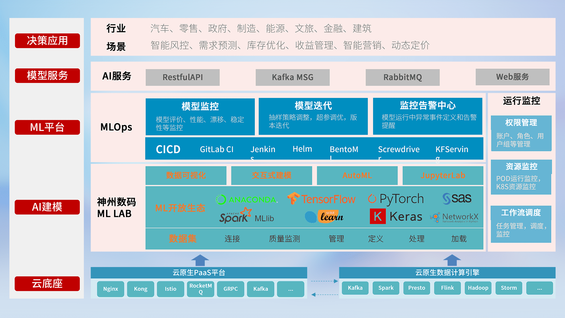 数据+模型双引擎驱动,,面向智能服务场景,,,,快速灵活利用AI技术,,,,支持业务决策,,,,助力企业智能化转型破局。。。
